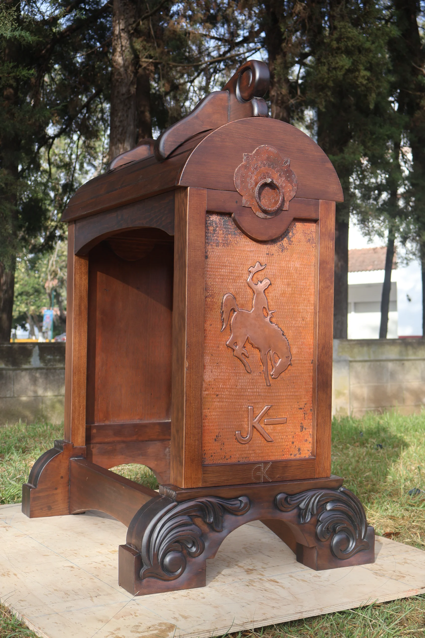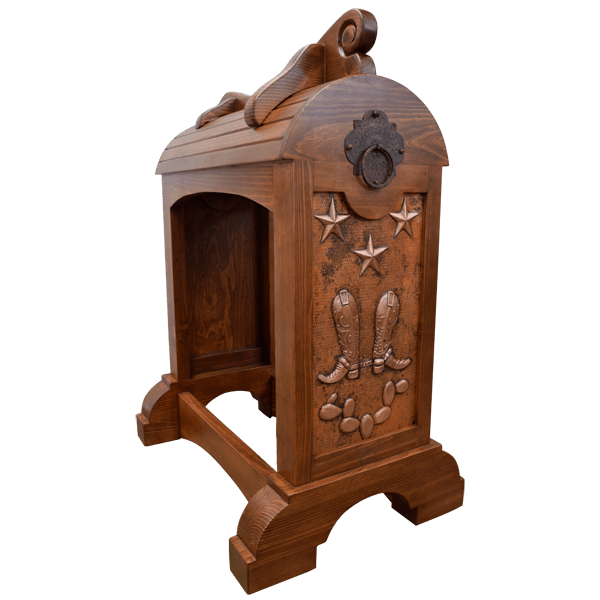 Every saddle stand comes with a beautiful copper plate that you can personalize to reflect your identity. Whether it’s your ranch brand, initials, name, western landscapes, or decorative motifs, each piece becomes one of a kind. Take a look at these examples to inspire your own custom design.