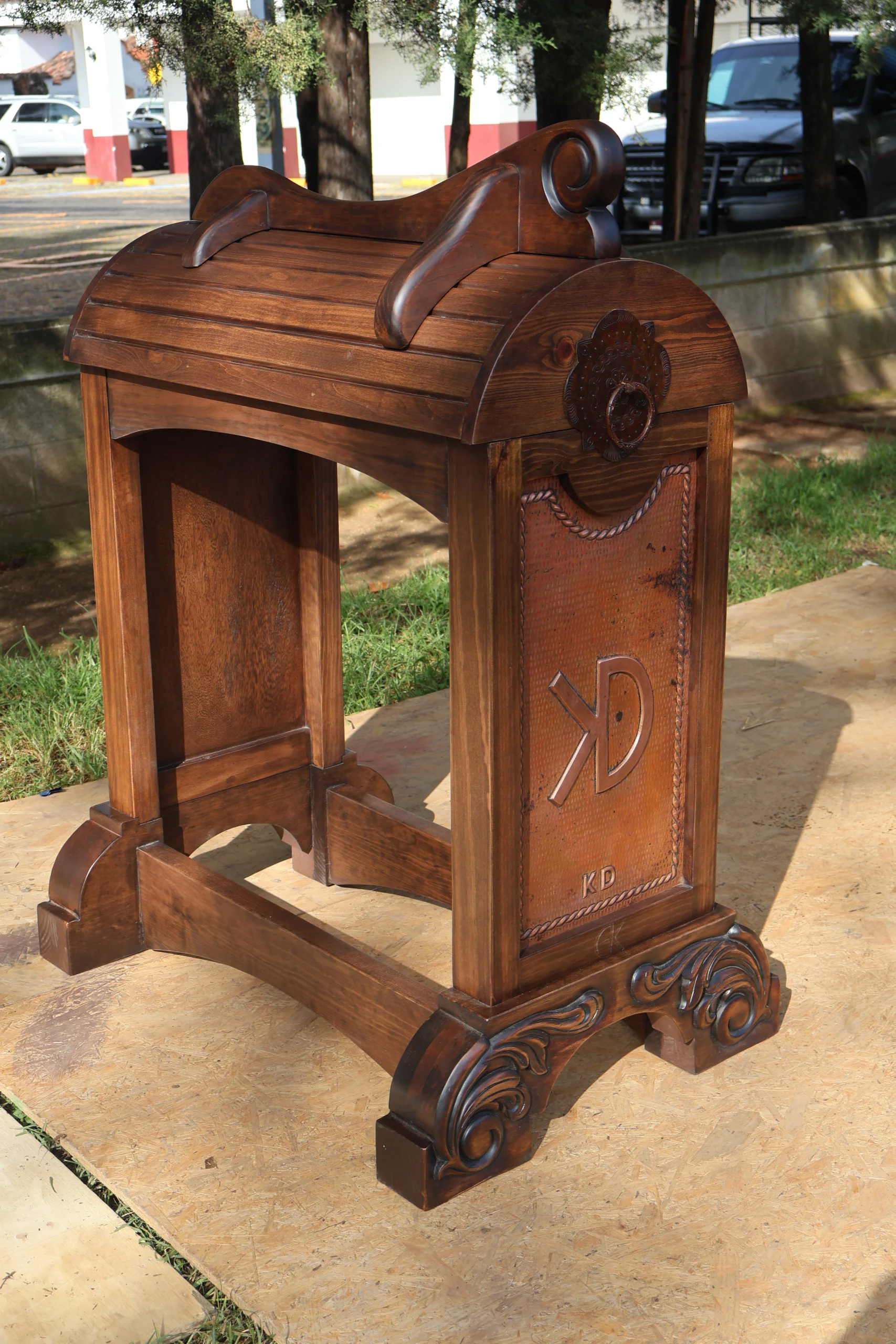 Buy Custom Rustic Saddle Stands – Handmade Wood & Copper for Ranch Decor
